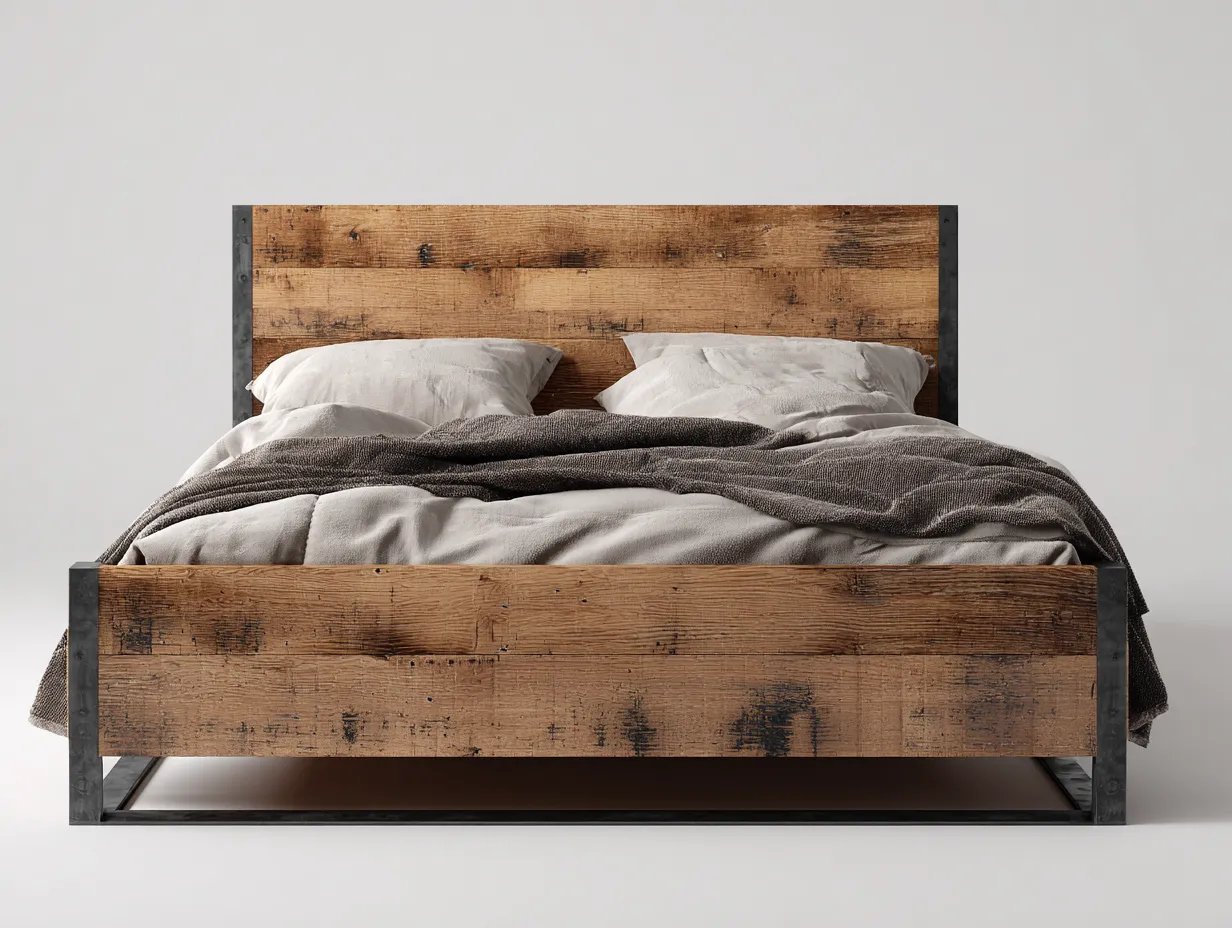 Letto matrimoniale dal carattere deciso pensato per ambienti moderni e industriali. La combinazione di legno e metallo crea una struttura stabile e visivamente equilibrata, ideale per l'uso quotidiano.