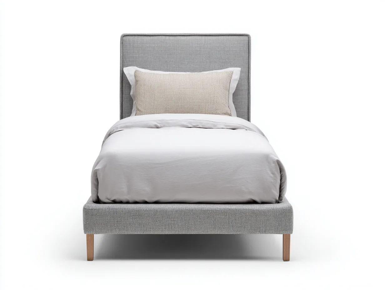 Letto singolo progettato per camere da letto moderne e ambienti residenziali ordinati. Il design essenziale e proporzionato consente un facile inserimento in spazi compatti, offrendo una soluzione funzionale e coerente con arredi contemporanei.